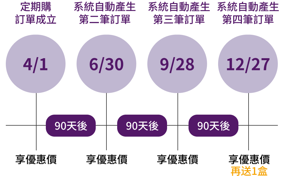 定期購每 90 天為一期,共有 4