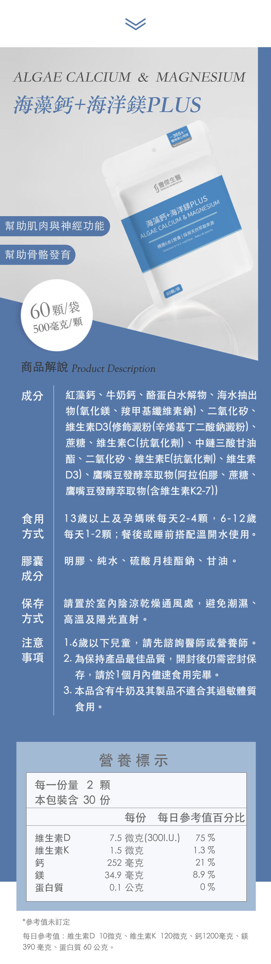 海藻鈣、牛奶鈣、海洋鎂、維生素D3、