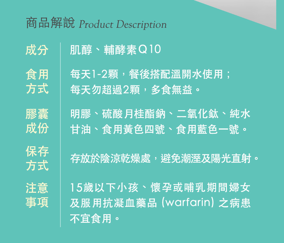 Q1.請問什麼時候開始補充肌醇+Q10呢?要補充多久?