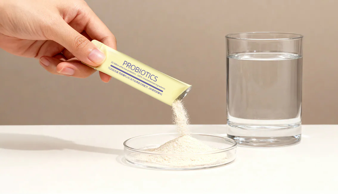 712D是粉包劑型!不僅方便攜帶不變質,採用的動態氣控技術獨立包裝,也能大幅保護益生菌,常溫保存更穩定,且想加入牛奶、優格、果汁都超好搭配,不怕受限!