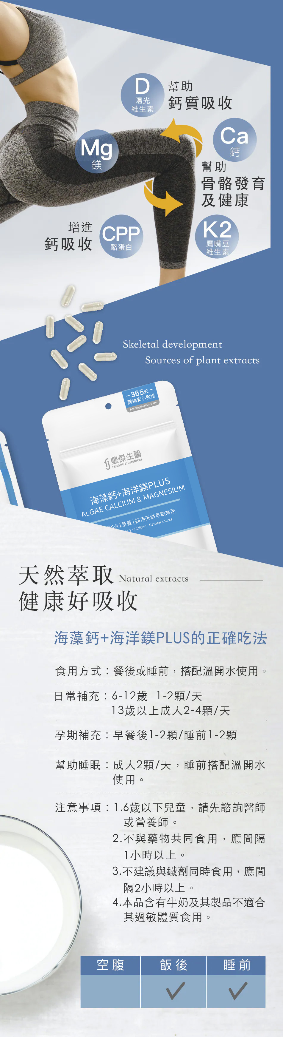 海藻鈣、牛奶鈣、海洋鎂、維生素D3、