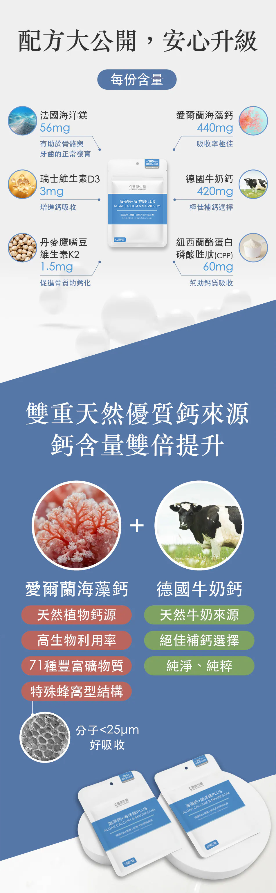 海藻鈣、牛奶鈣、海洋鎂、維生素D3、