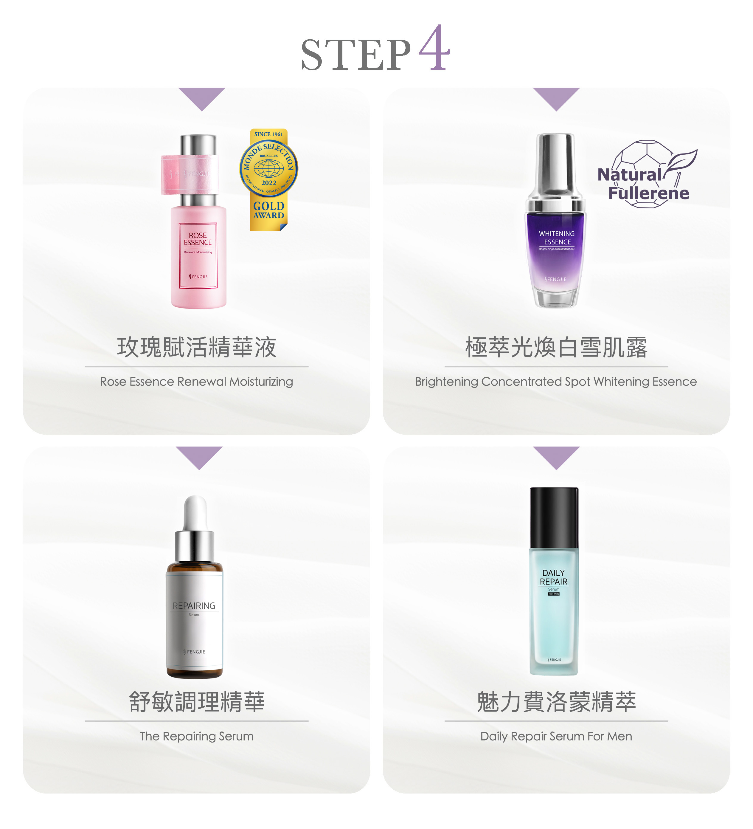 玫瑰凍齡霜, 玫瑰活膚膠囊, 富勒烯肌因逆齡霜, 舒敏冰沙霜, 涼感, 抗過敏
