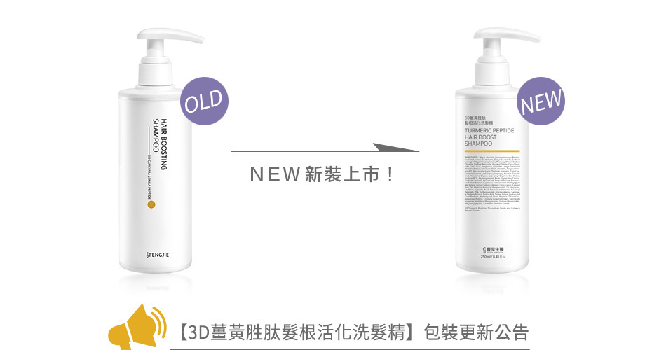 薑黃是一種亞熱帶植物,其根莖生命力強、具持續生長特性。豐傑使用全球第一的專利「Capilia Longa™3D薑黃胜肽技術」,靈感來自3D列印的創新理念,將薑黃模擬毛囊所需營養,生成高密度薑黃外泌體胜肽,轉化植物潛能至洗髮精中,有效強健髮根、全面呵護頭皮髮絲。
