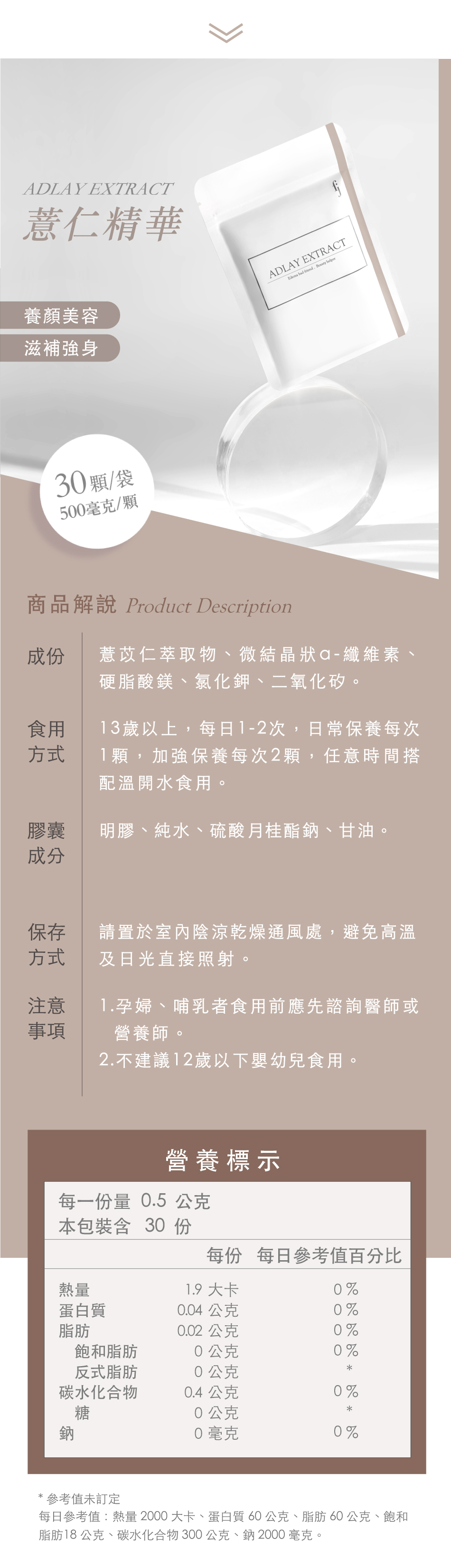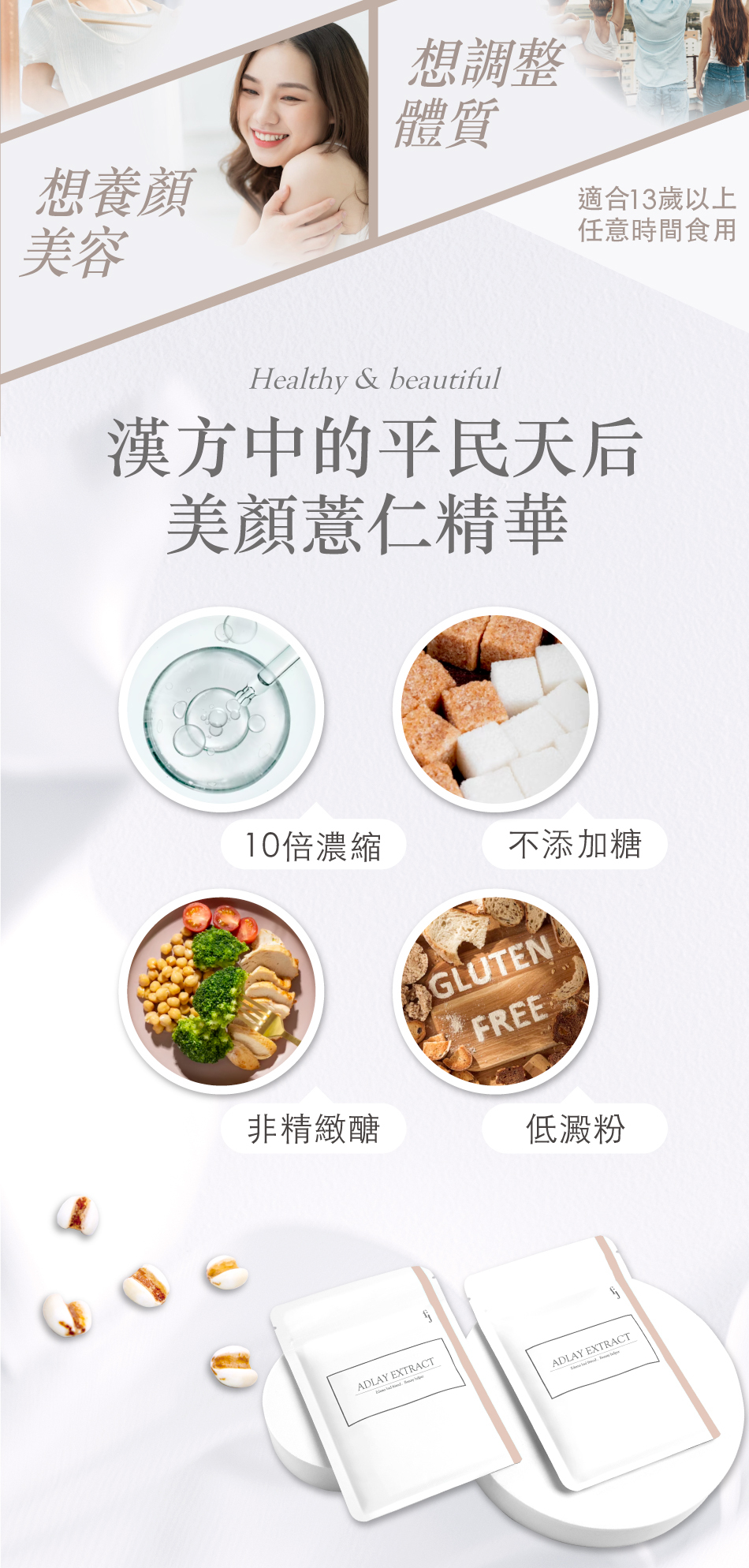 薏仁又稱薏米、薏仁米,營養價值極高,富含植物性蛋白質、脂質、維生素B1/B2、鐵、鈣、磷、鐵、氨基酸等營養成分,在所有穀物中包含最多的巨量營養素。我們使用10倍高濃縮薏仁精華,給你最好的薏仁精粹營養。