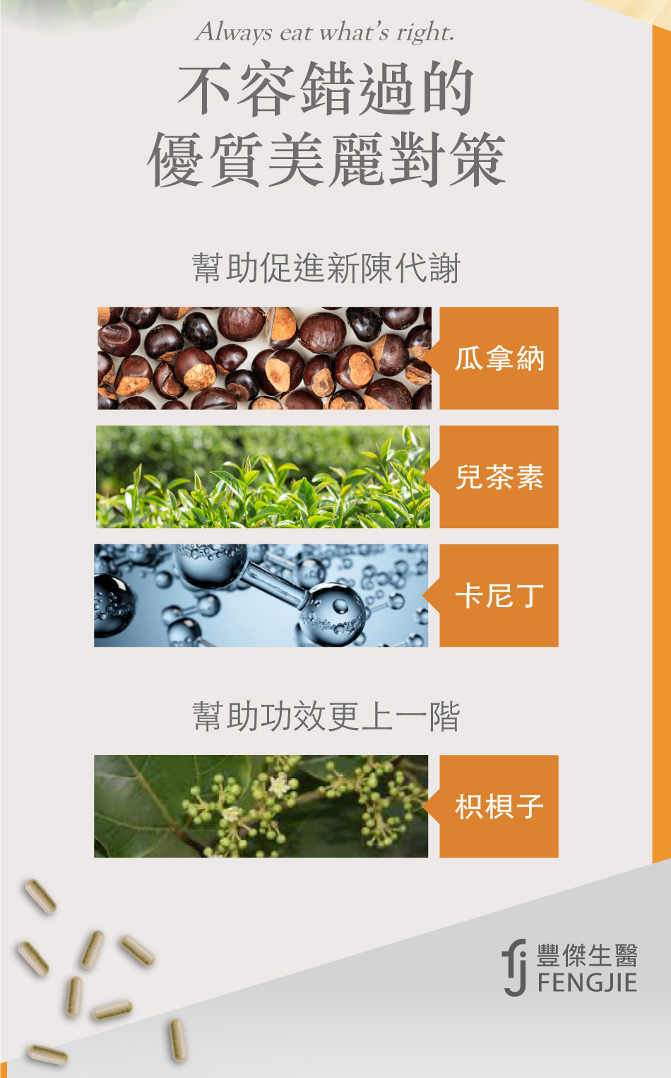 ➤瓜拿納、肉鹼、綠茶促進新陳代謝