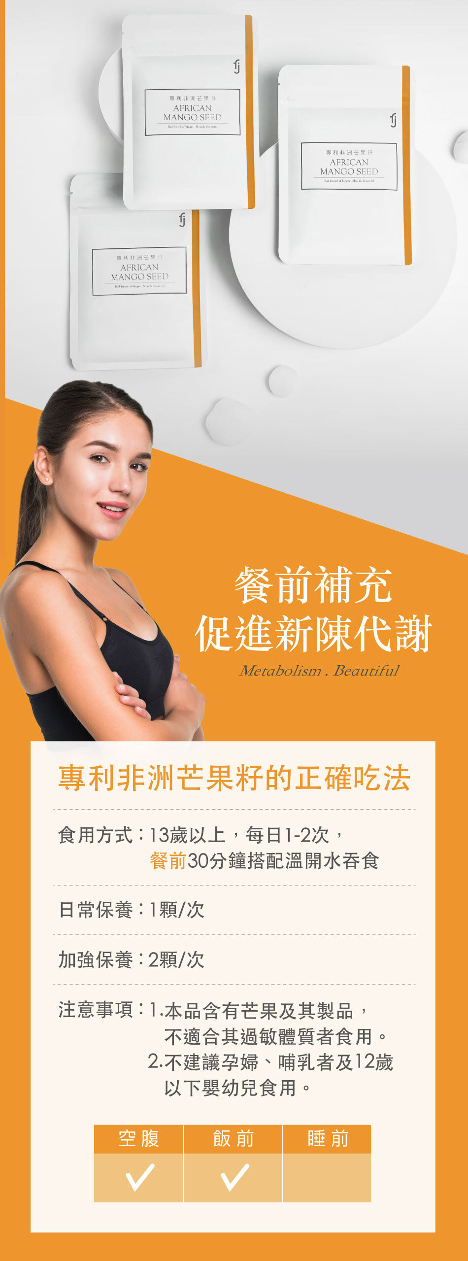 相當適合喔!因為我們的專利非洲芒果籽配方中有添加卡尼丁及枳椇子,幫助你調節生理機能、促進新陳代謝。