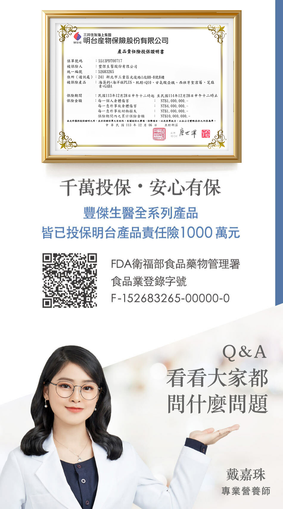 Q1.豐傑的海藻鈣包含哪些成分?含量?分別有哪些好處?