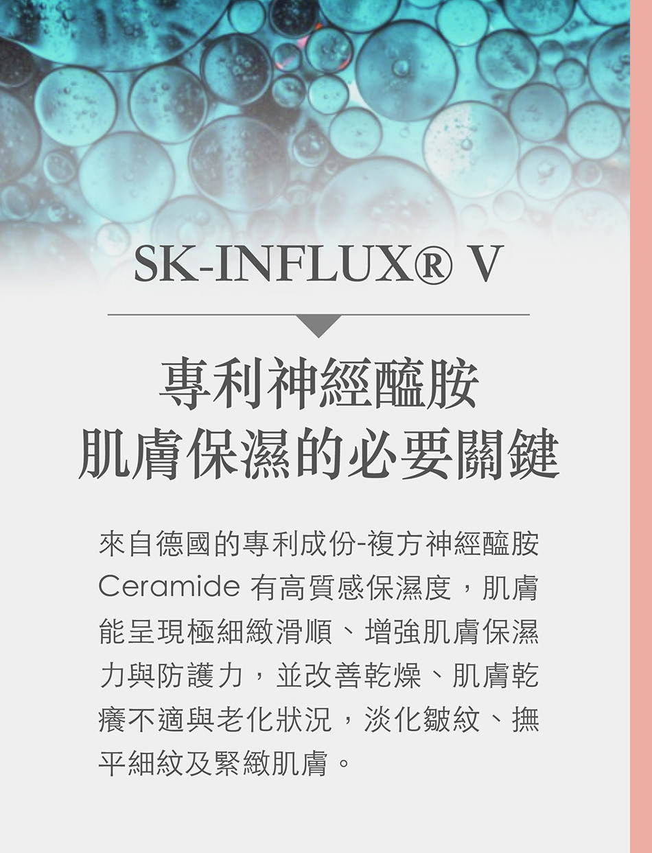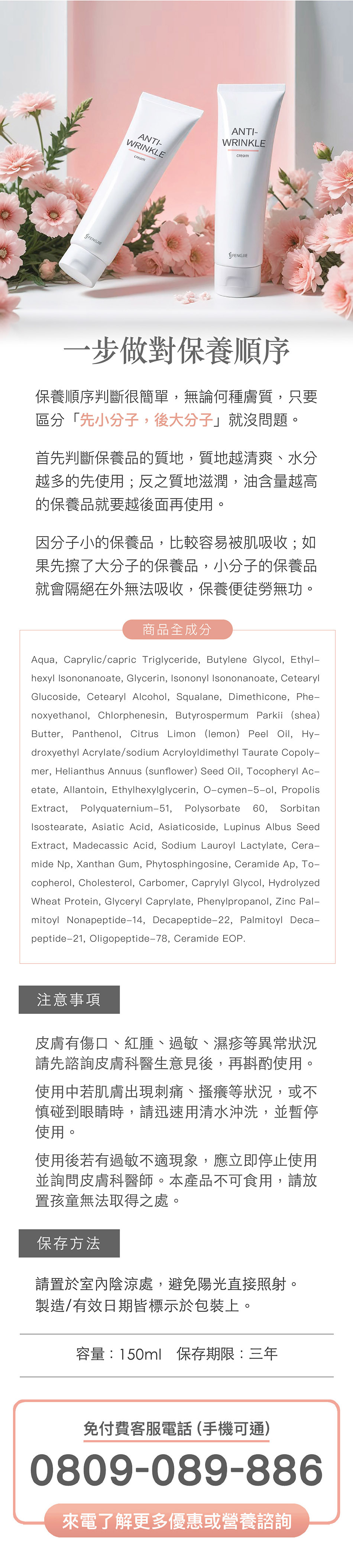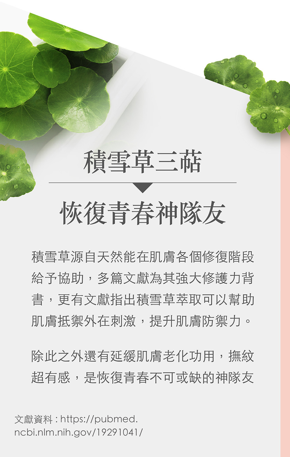 添加撫紋精華:100%法國蜂膠蜜/積雪草/白羽扇豆油/神經醯胺