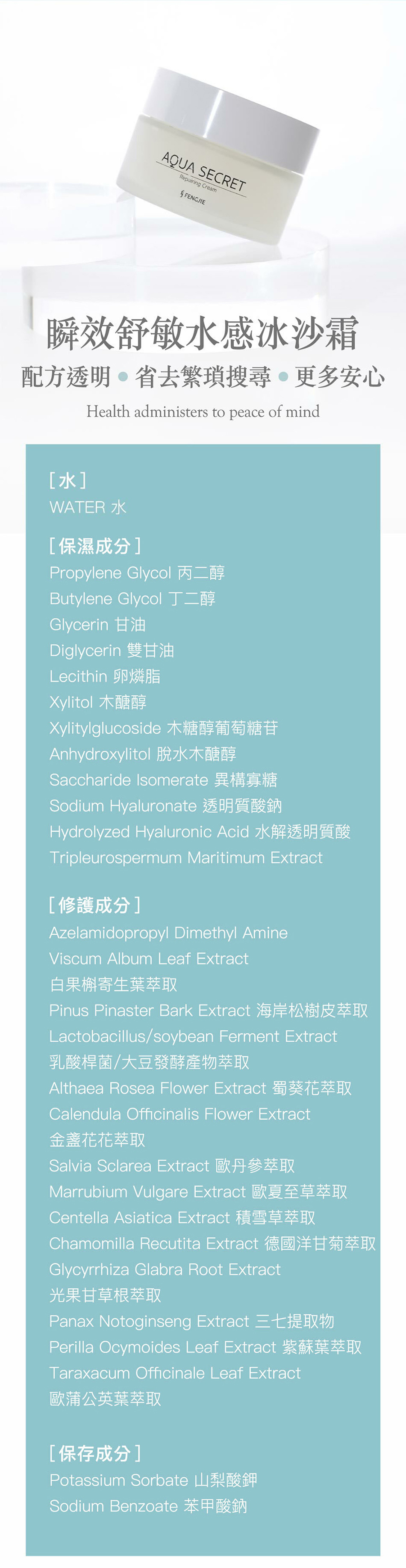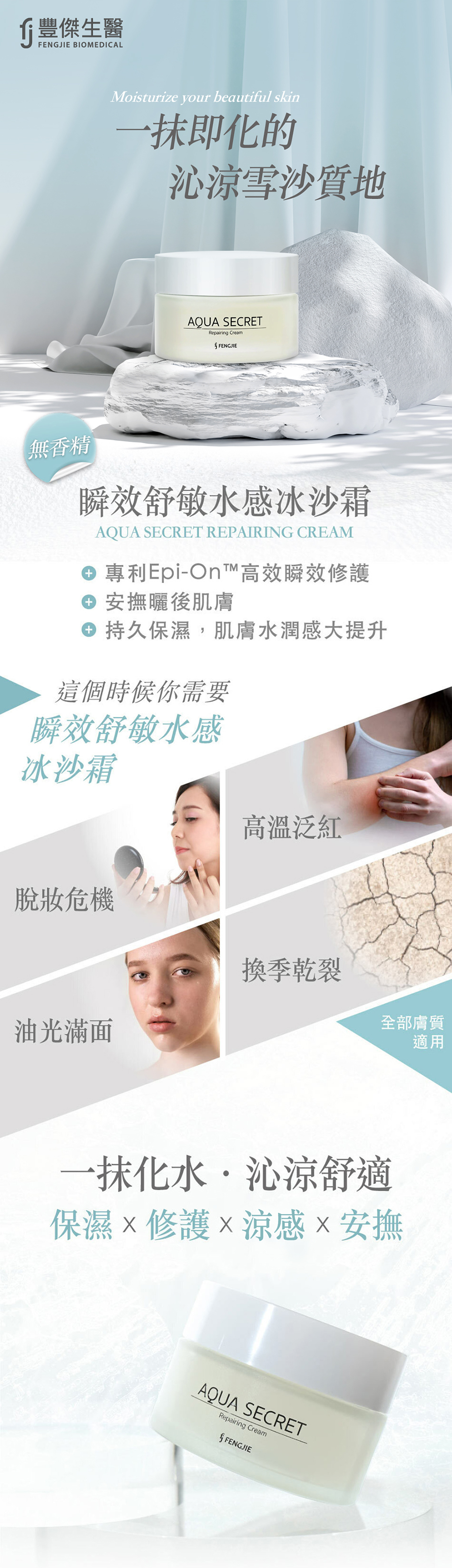 豐傑的冰沙霜專門針對這兩種肌膚而設計,成分單純不添加色素、酒精、香精,