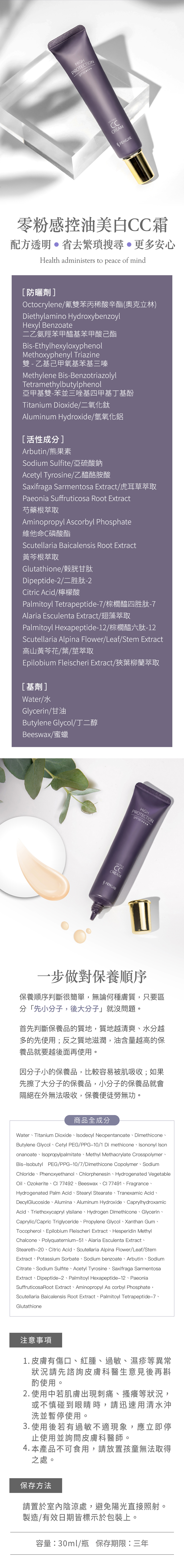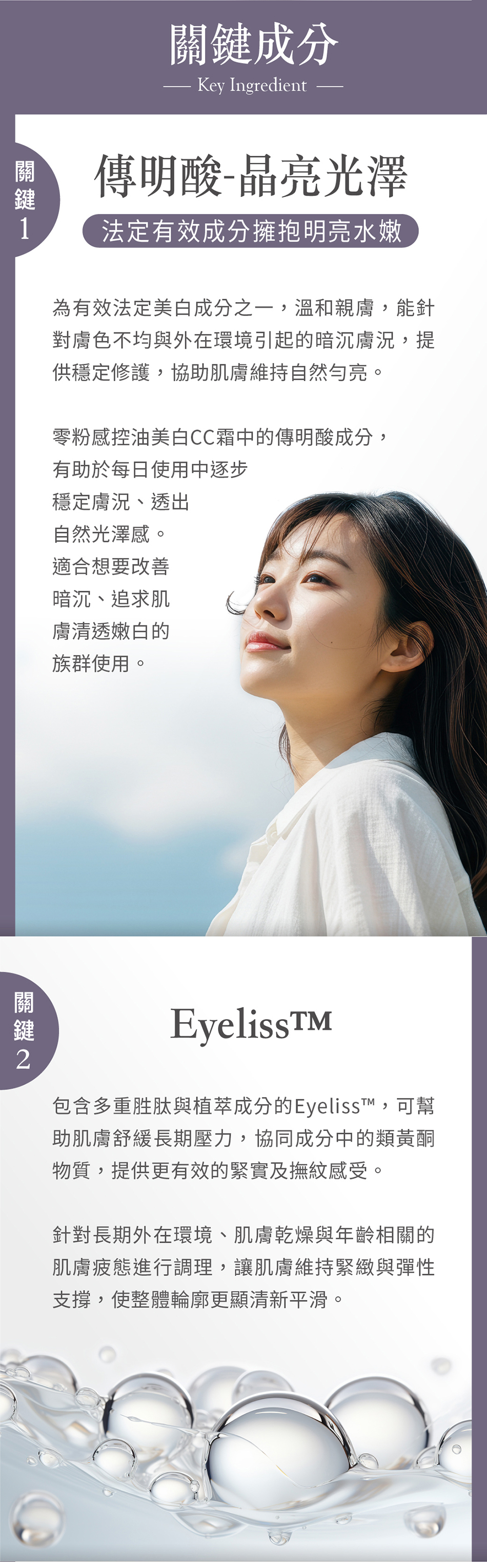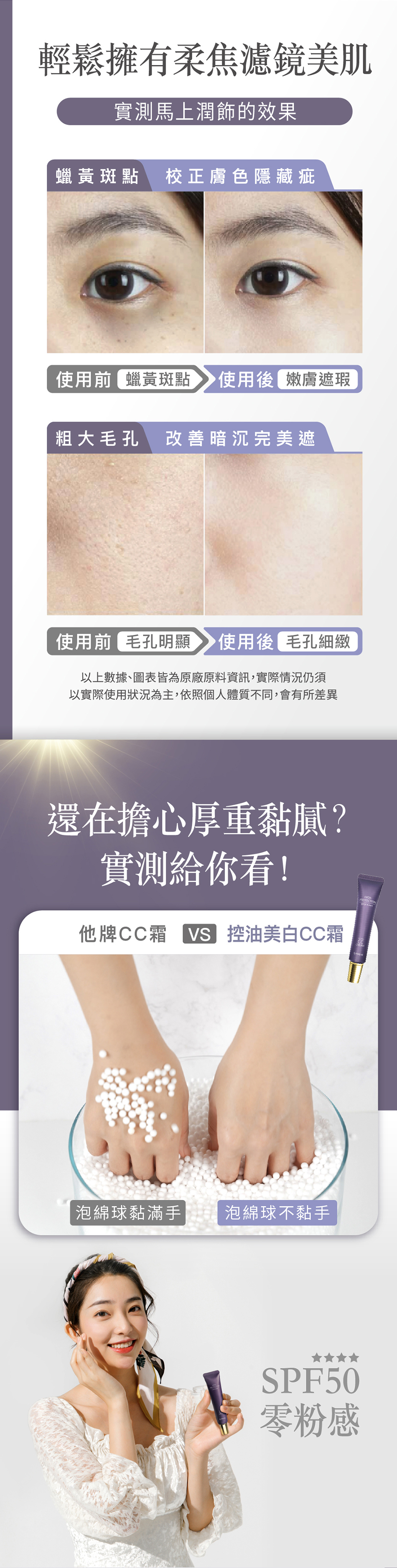 零粉感控油美白CC霜建議白天使用,晚上則以修護保養肌膚的產品為主。