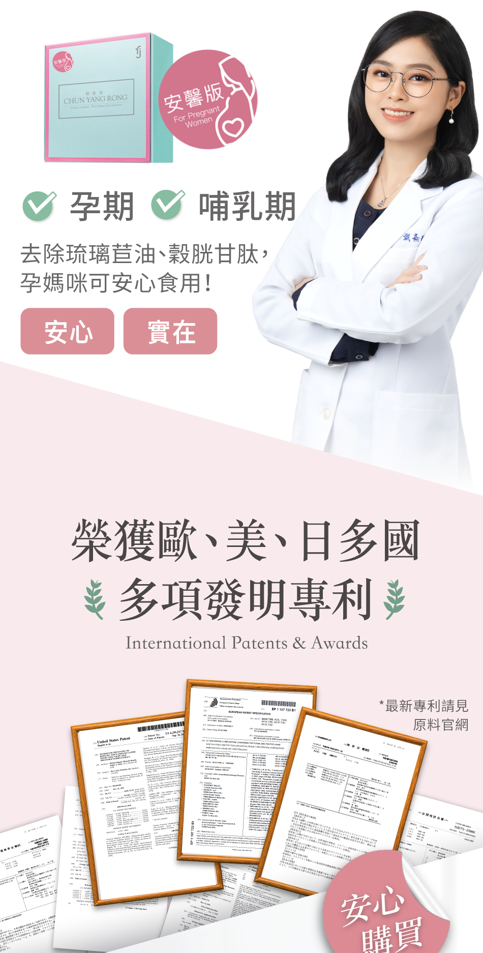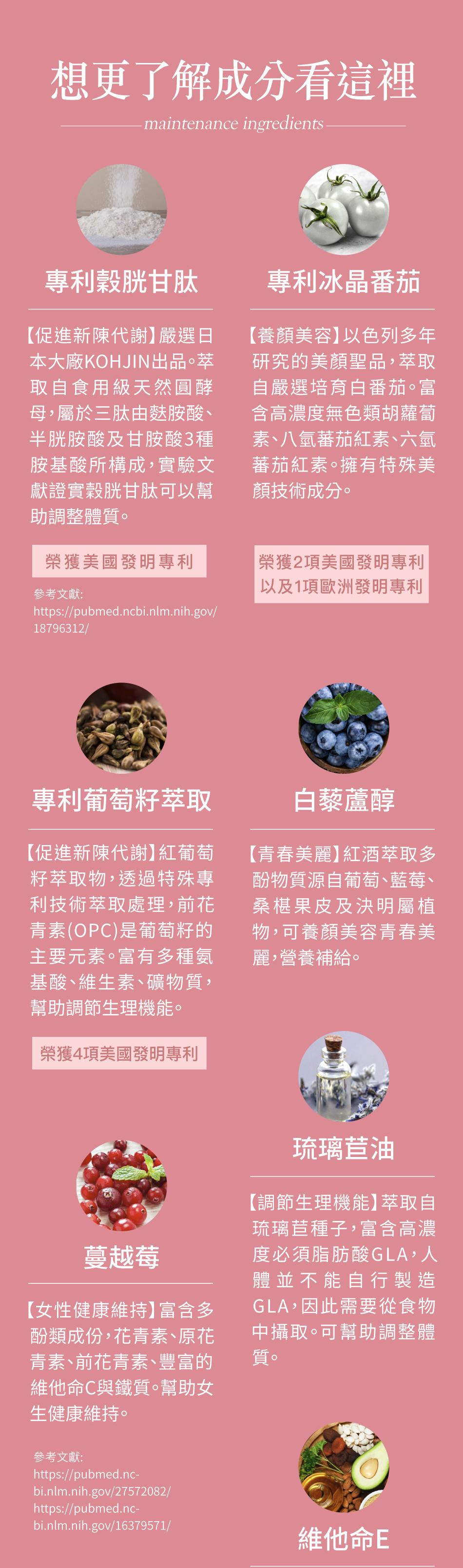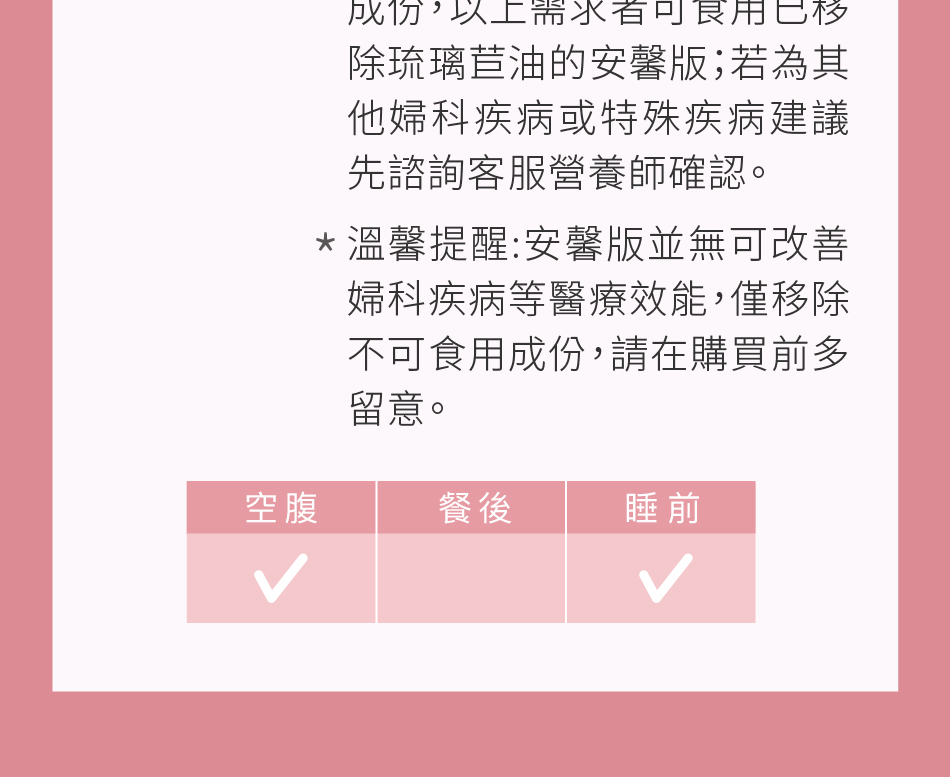 ※孕婦可選擇【安馨版】不含專利穀胱甘肽、琉璃苣油