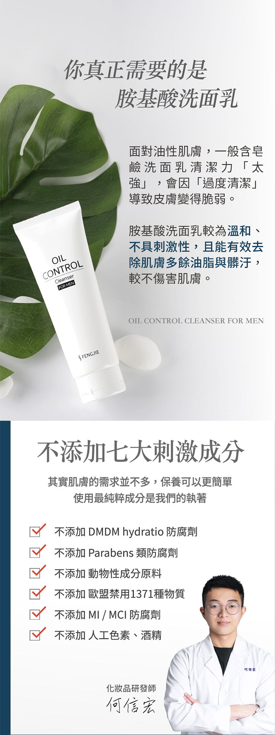 本產品使用胺基酸界面活性劑,相對較為溫和、不具刺激性,且也能夠有效去除肌膚多餘油脂與髒汙,比較不傷害肌膚健康的皮脂膜。