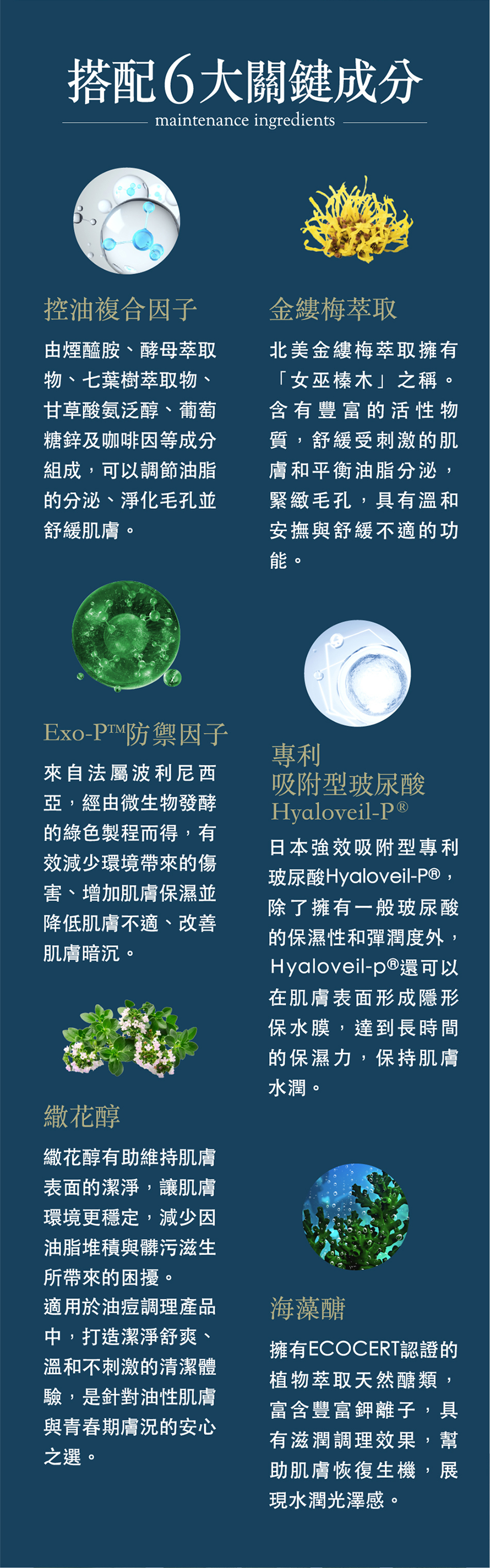 ➤ 控油複合因子、解除油光危肌