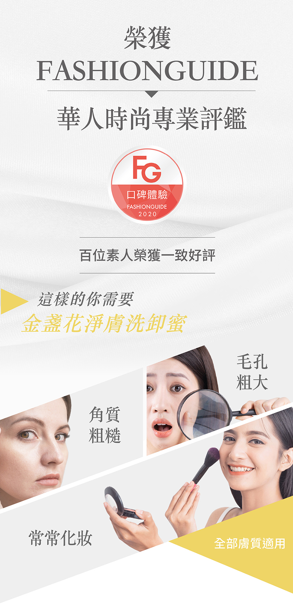 本產品榮獲2020FG華人時尚專業評鑑,是百位素人推薦的洗卸合一產品喔!