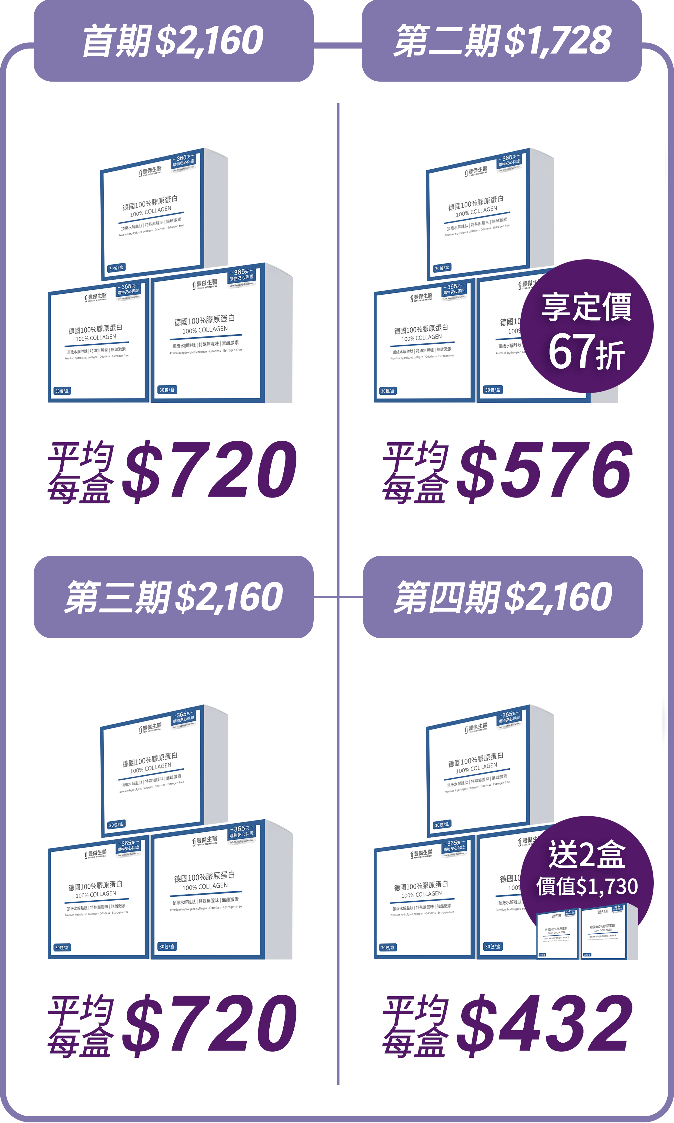 ☑︎ 第4期 $2160 (5盒) - 享價值$1730膠原蛋白2盒