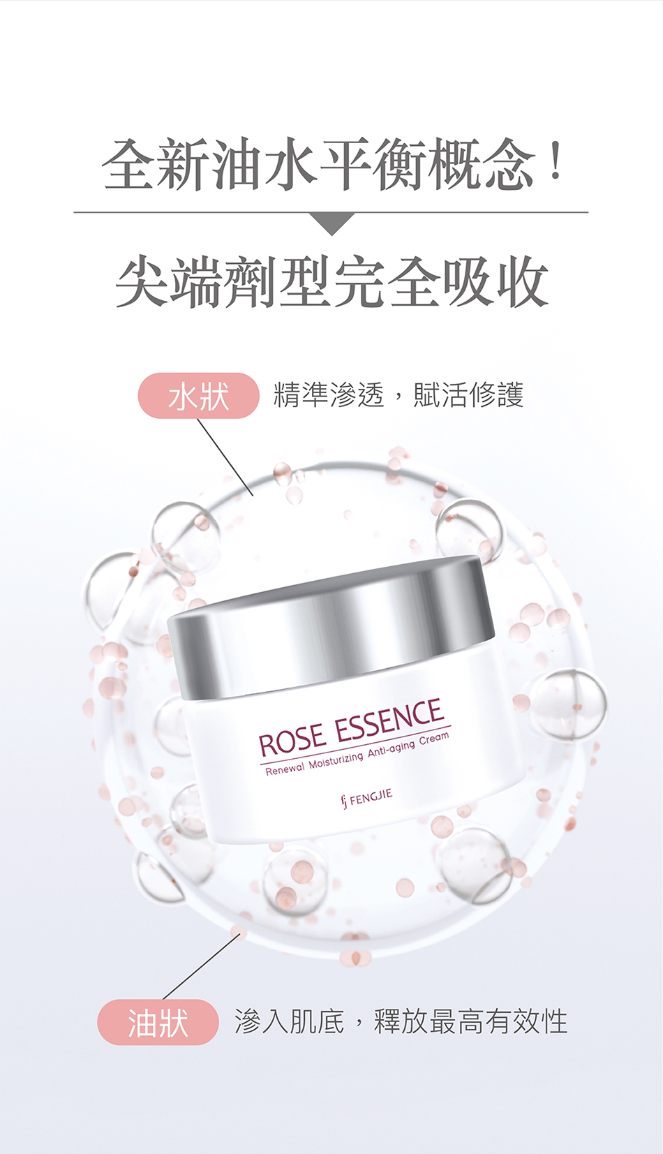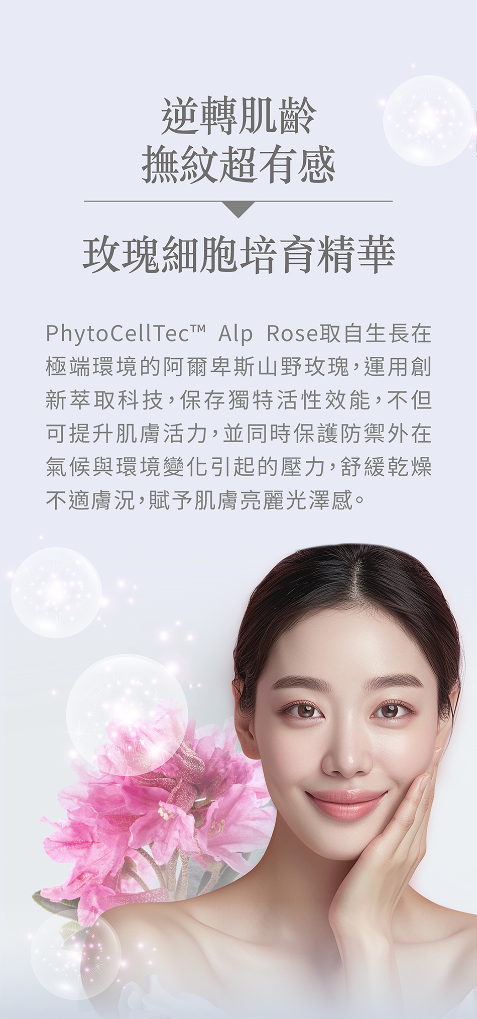 每一瓶玫瑰鎖水凍齡霜當中,添加超過一萬朵玫瑰細胞培育精華,發現發酵培育技術的分子小, 擁有極強滲透肌膚的能力,可深層修復撫平細紋,延緩肌膚衰老。