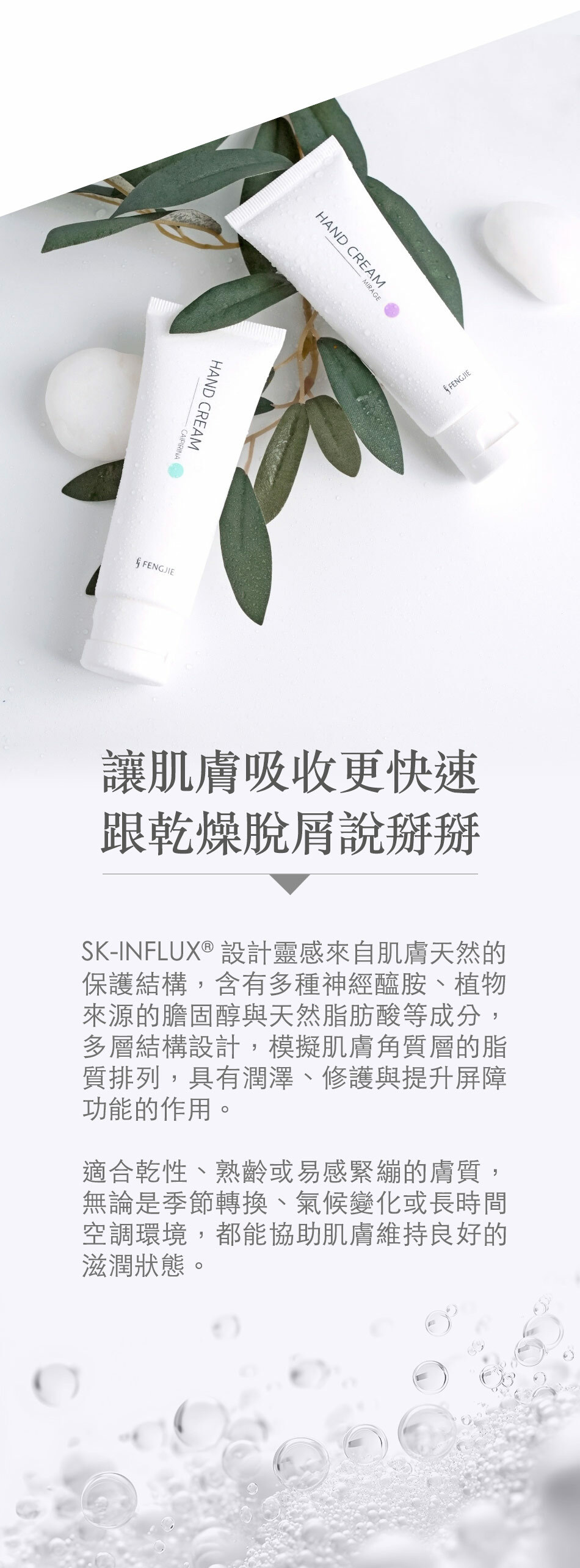 因為有添加修護屏障的神經醯胺以及滋潤肌膚的乳木果油,手部肌膚得到修護同時還不會有油膩感!