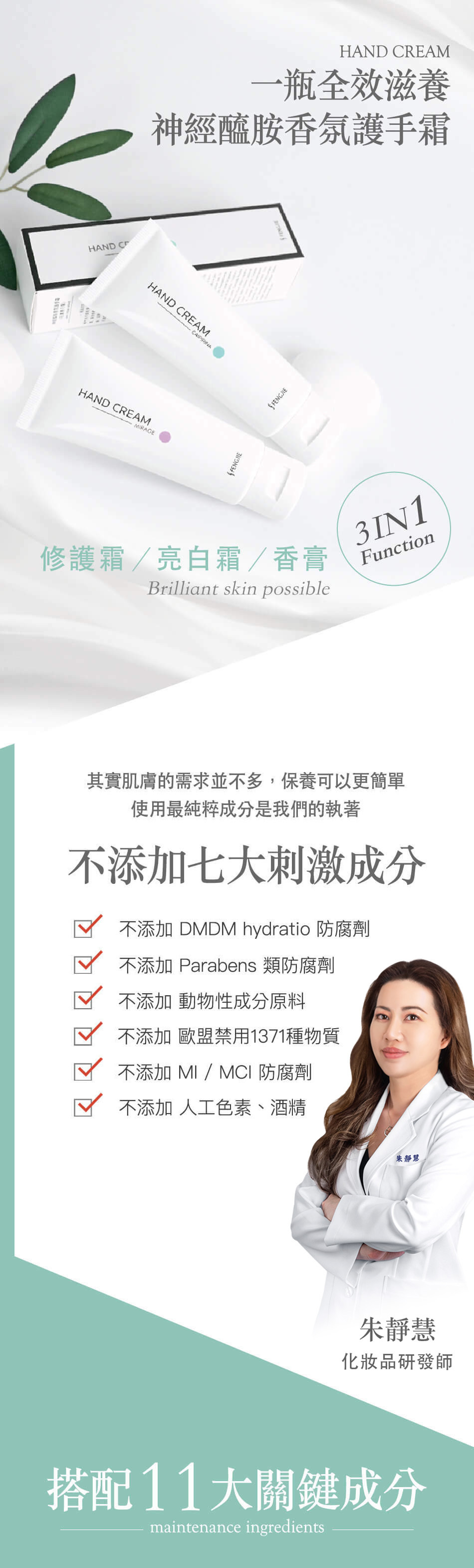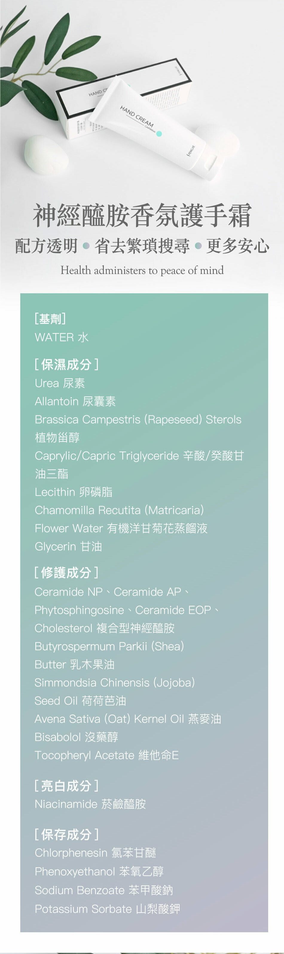 豐傑的神經醯胺香氛護手霜保濕成分包含: