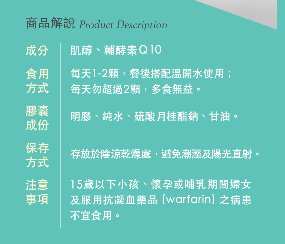 Q1.請問什麼時候開始補充肌醇+Q10呢?要補充多久?