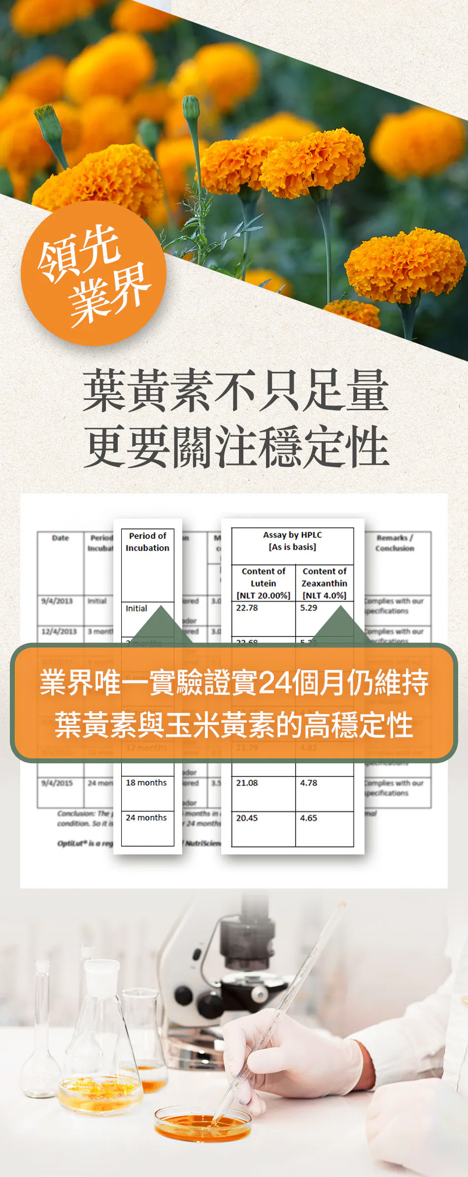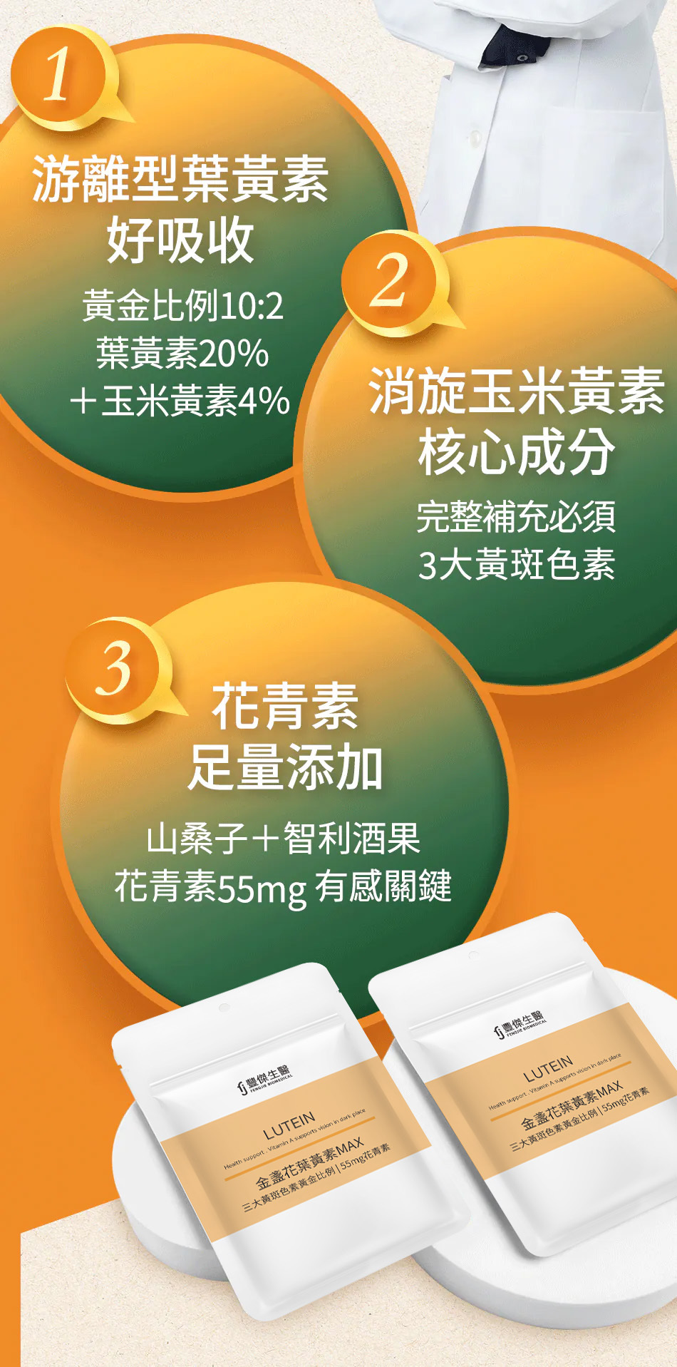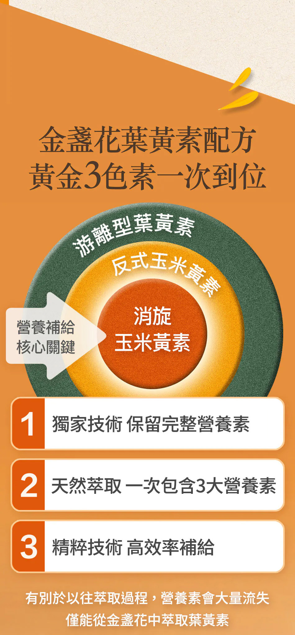 ➤市售罕見,3合1黃斑色素配方 (游離型葉黃素×玉米黃素×消旋玉米黃素)