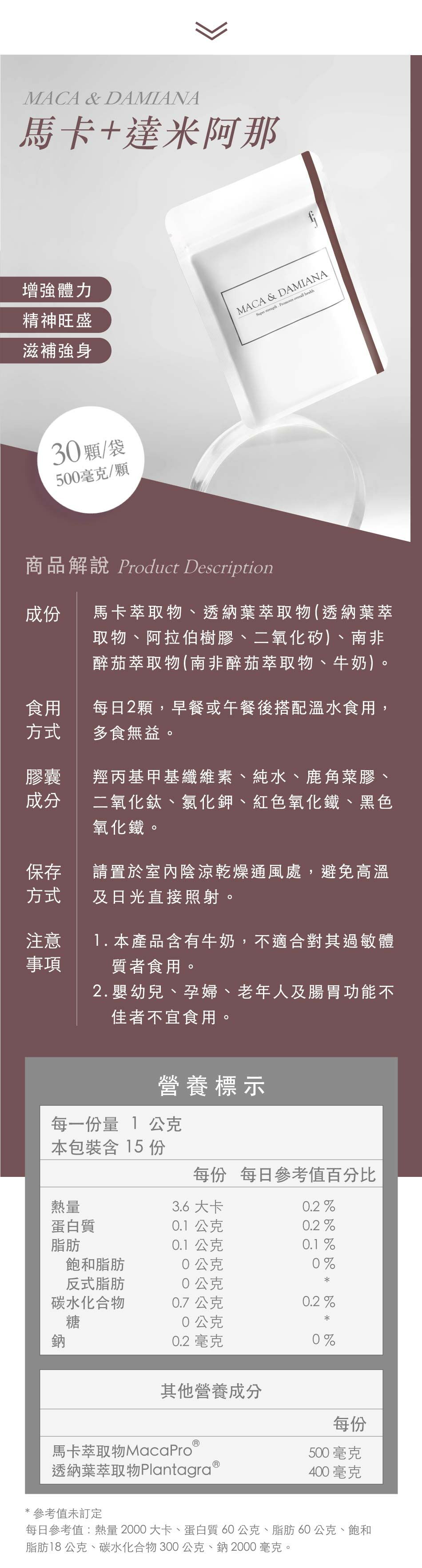 馬卡Maca,又稱秘魯人蔘,是原產於南美洲安第斯山脈的一種十字花科植物,根部有紅、黑、紫等顏色,在當地具有被烹飪的悠久歷史,許多臨床實驗中證實,能夠幫助男性維持精神旺盛。