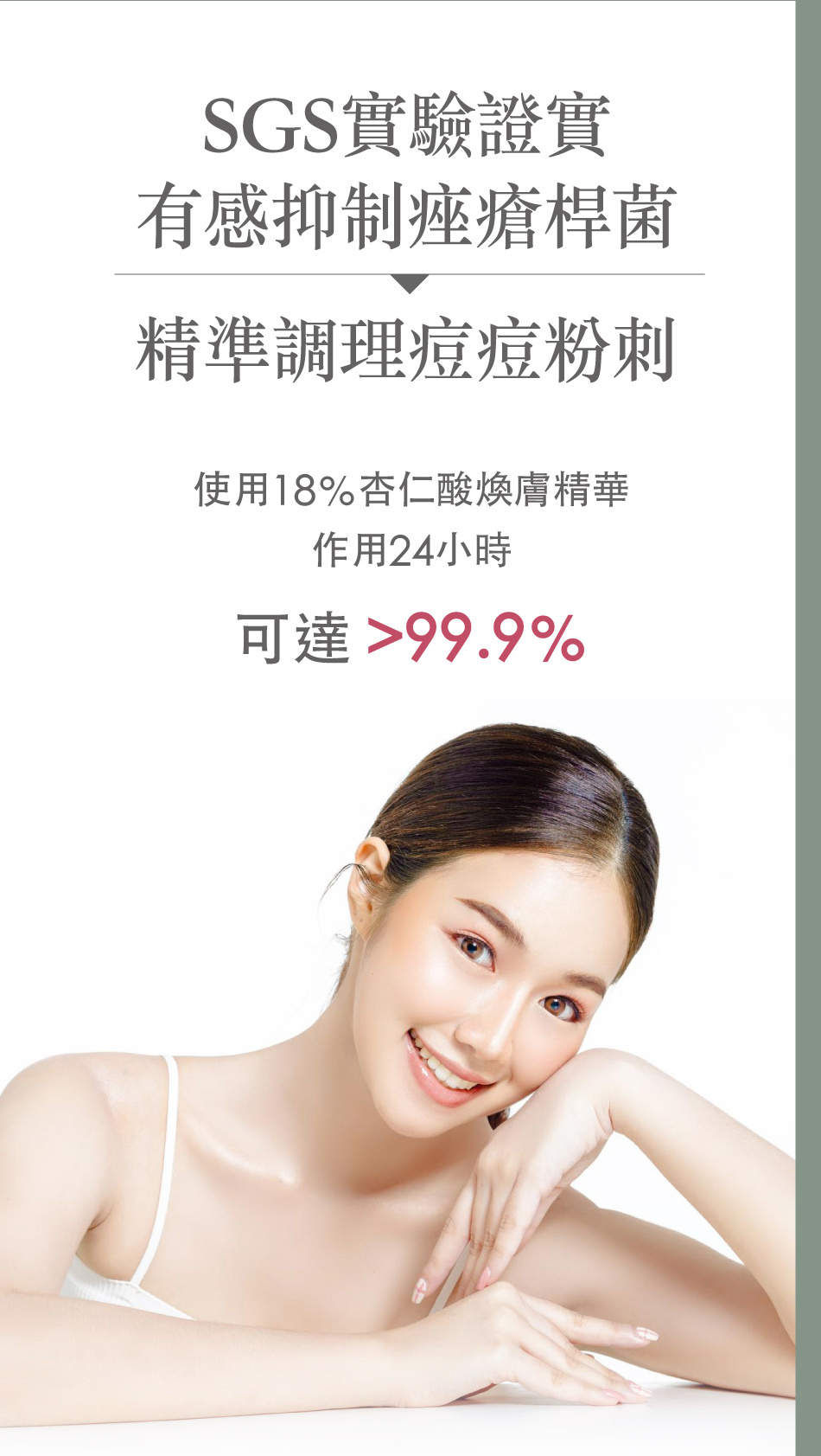 痘痘肌適用。改善青春痘、內包粉刺、毛孔角化