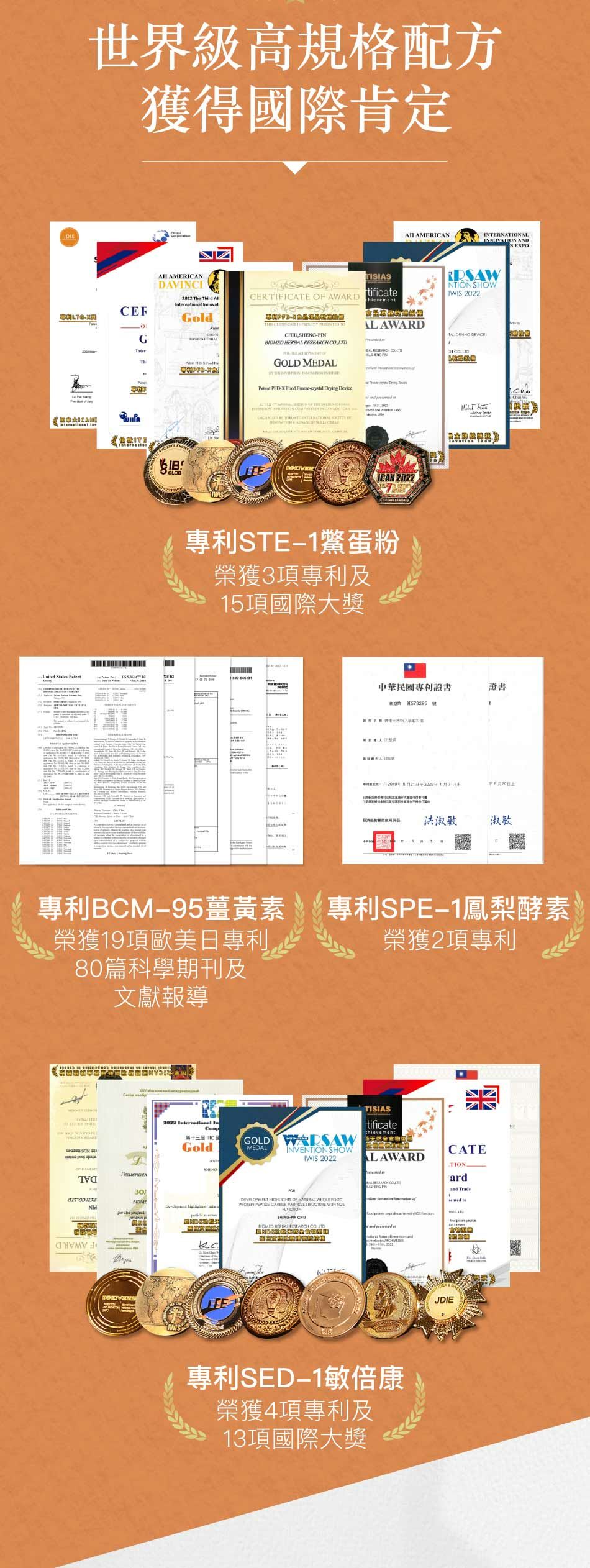 四大專利成分:敏倍康SED-1配方、鱉蛋粉、薑黃、鳳梨酵素