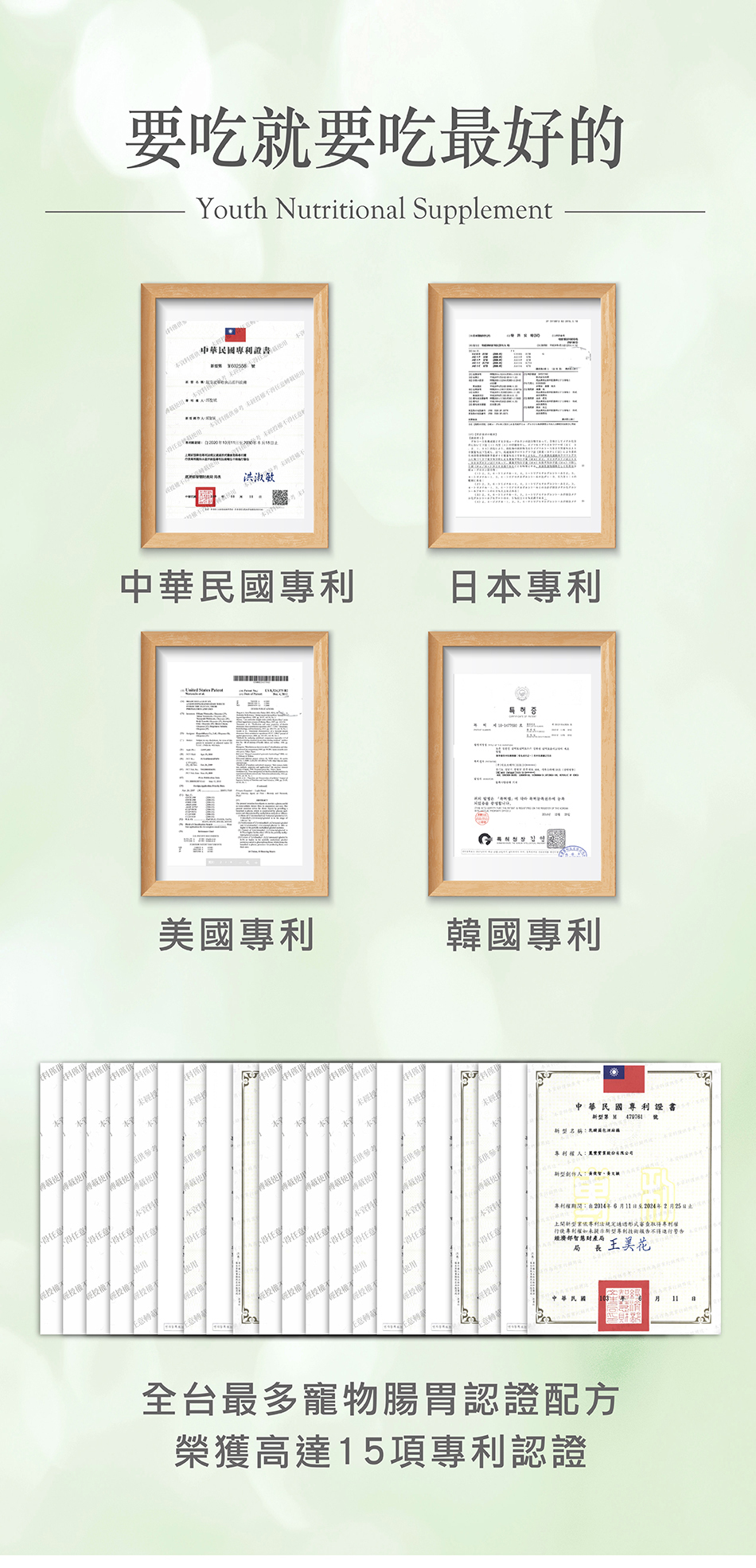 ➤首創寵物全能精華-腸胃調理、綜合營養、骨骼、免疫