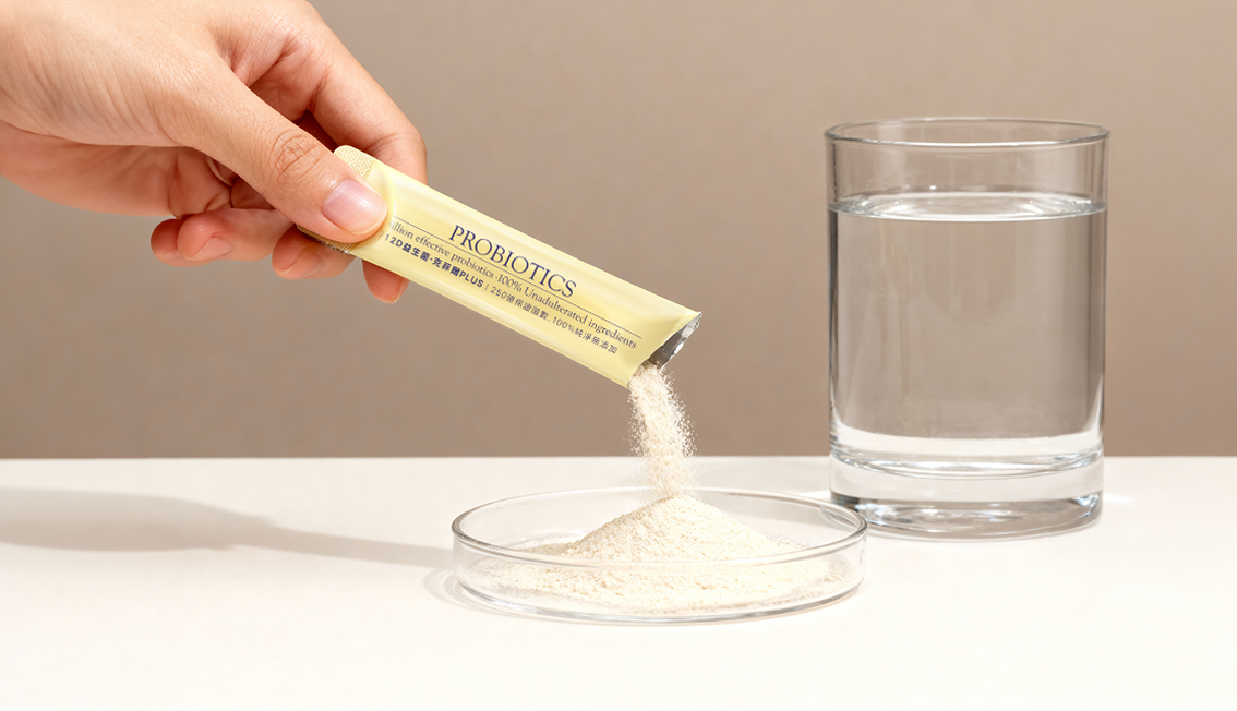 712D是粉包劑型!不僅方便攜帶不變質,採用的動態氣控技術獨立包裝,也能大幅保護益生菌,常溫保存更穩定,且想加入牛奶、優格、果汁都超好搭配,不怕受限!