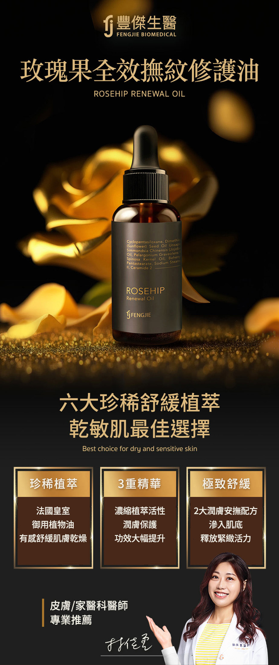 法國皇室御用【玫瑰果油】搭配兩倍高濃度深海巨藻萃取,採用特殊專利技術濃縮三重植萃精華,一滴強效增強肌膚保護力高達50%以上。