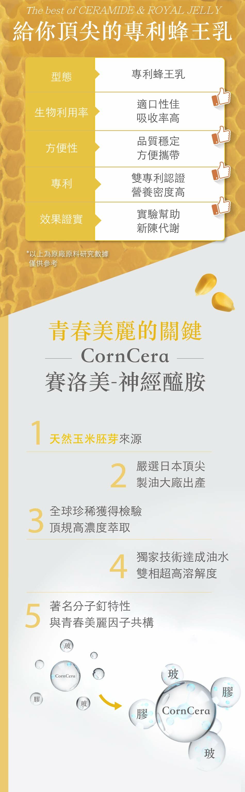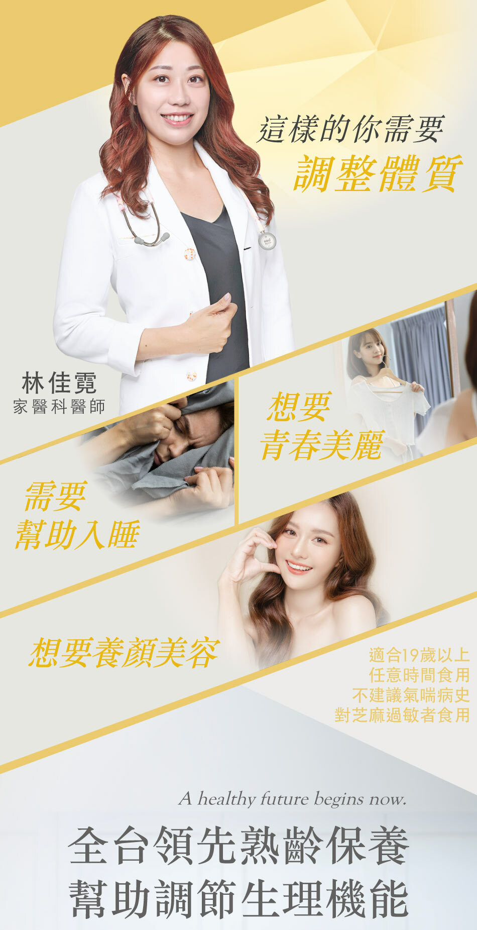 神經醯胺+專利蜂王乳專門設計給熟齡保養,若是提早想要幫助養顏美容、幫助入睡、調節生理機能、調整體質也很適合使用喔!適合沒有特殊疾病者食用,以保養身體,健康維持。