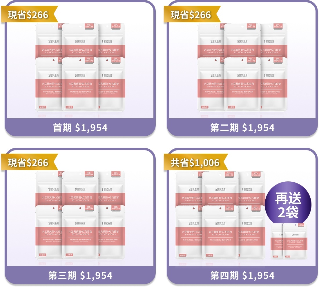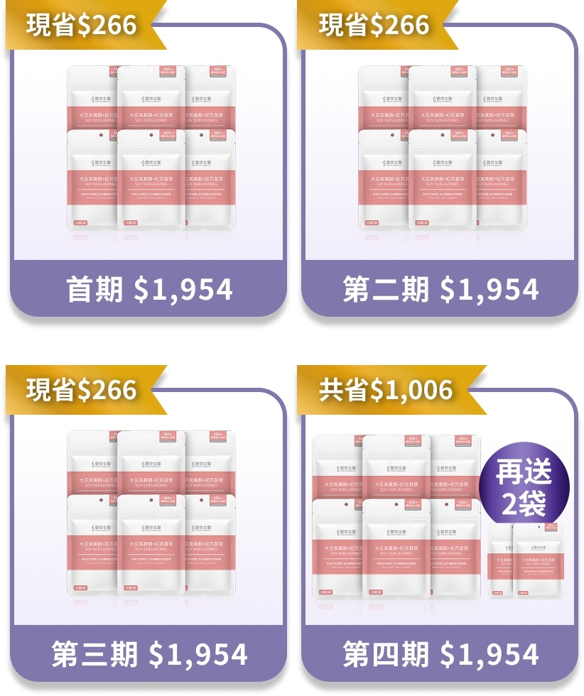 指定定期購商品,【大豆異黃酮+紅花苜蓿】定期購 第四期再送2袋