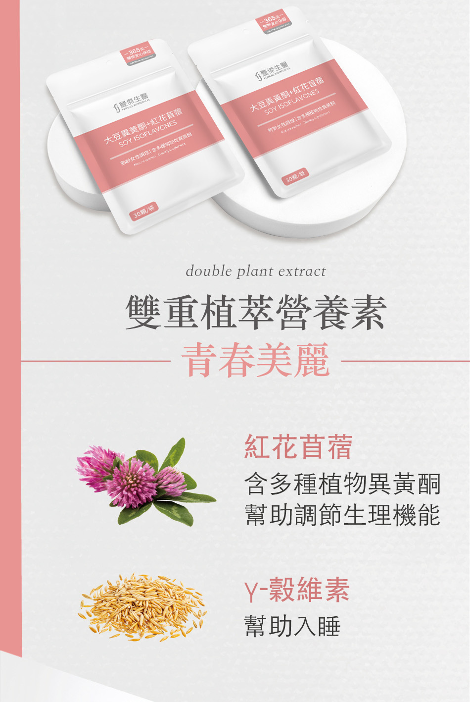 本產品為天然非基改大豆、紅花苜蓿等植物萃取,非藥物化合而成,成分天然萃取,可安心長期使用。