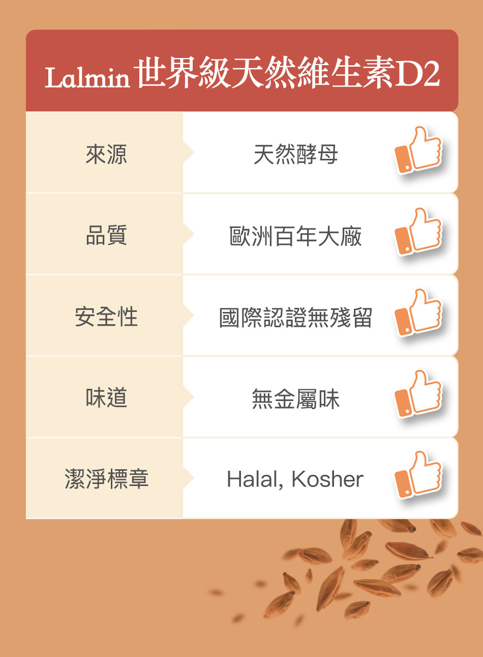 而豐傑的酵母D2因採用天然來源,無化學殘留更有安心感,並以茹素者來說,D2會是更佳的選擇喔。