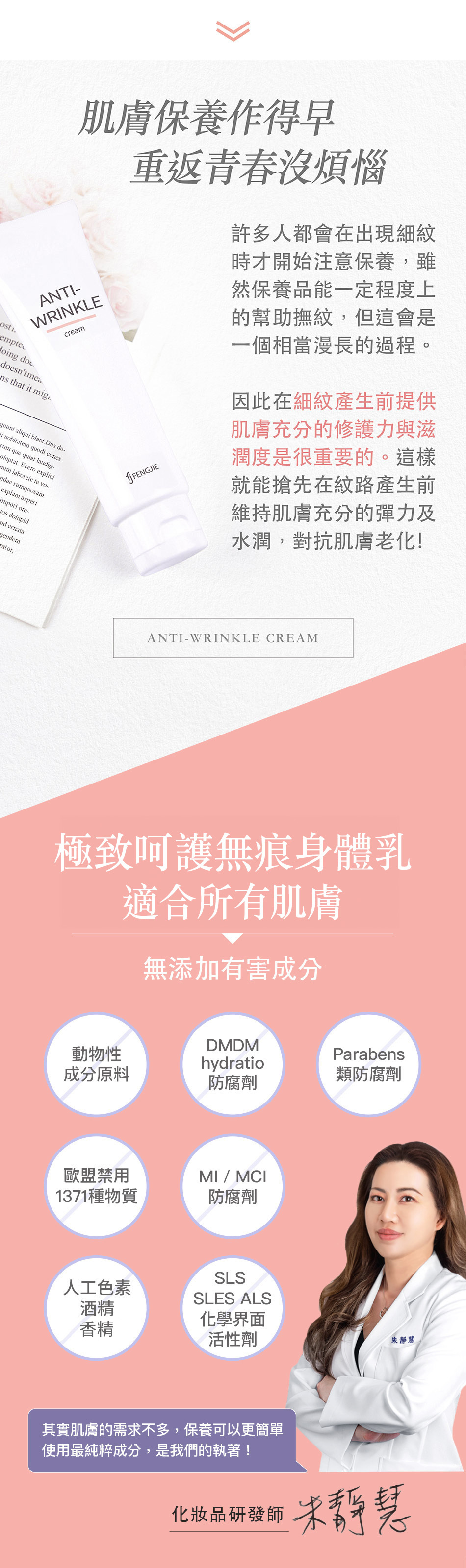 添加撫紋精華:100%法國蜂膠蜜/積雪草/白羽扇豆油/神經醯胺
