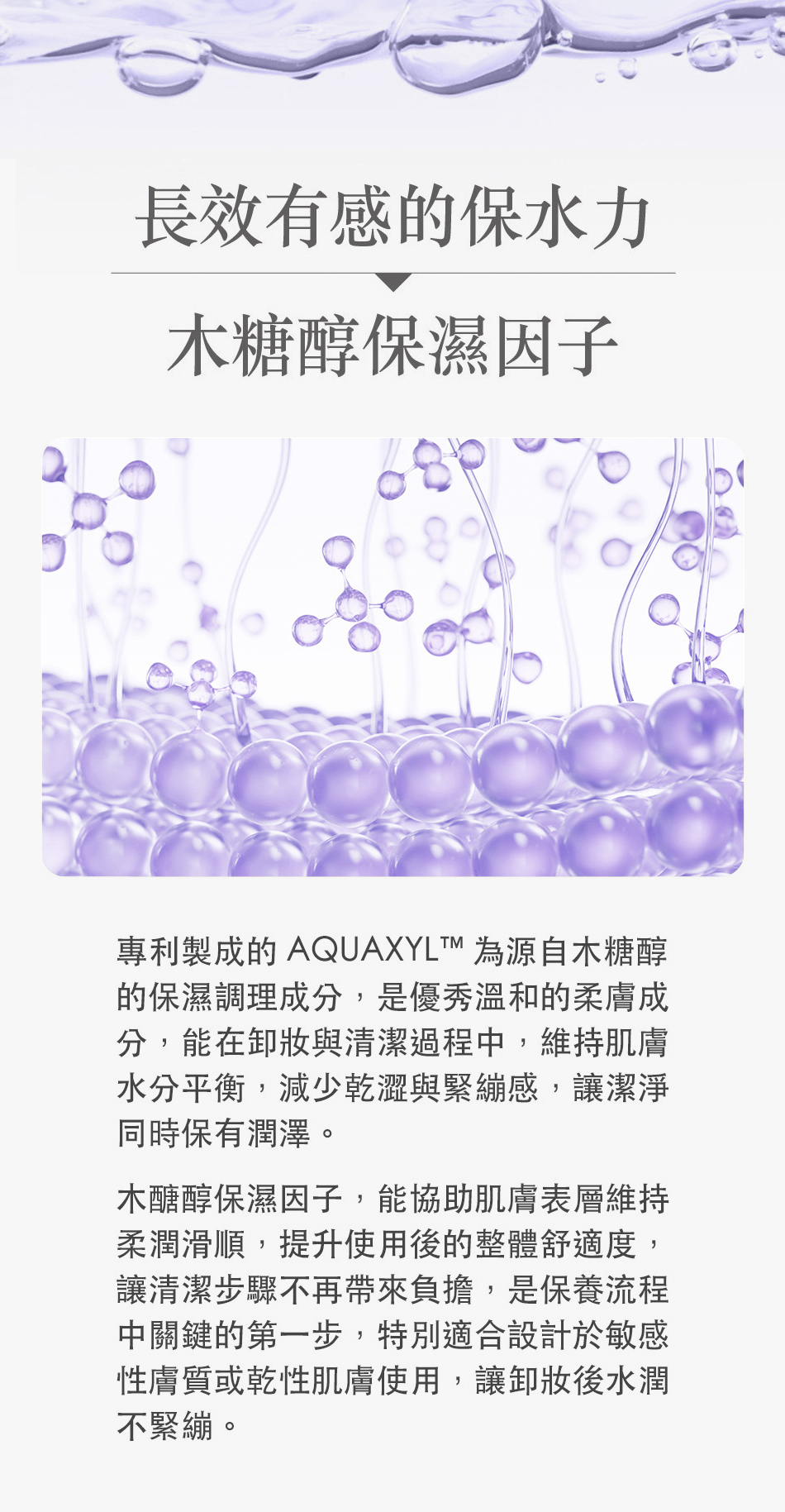 親水性極佳,沖水瞬間輕鬆帶走各種彩妝髒汙,溫和溶解、包覆髒污、殘妝,給肌膚最舒適的淨透感。