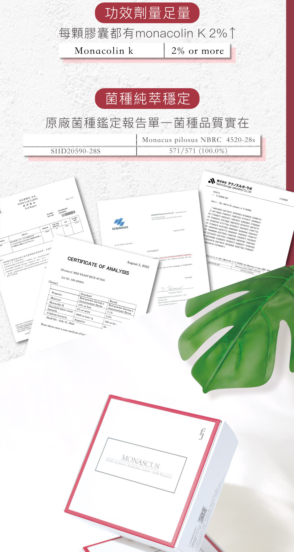 ➤關鍵功效成分Monacolin K國家級標準食品劑量