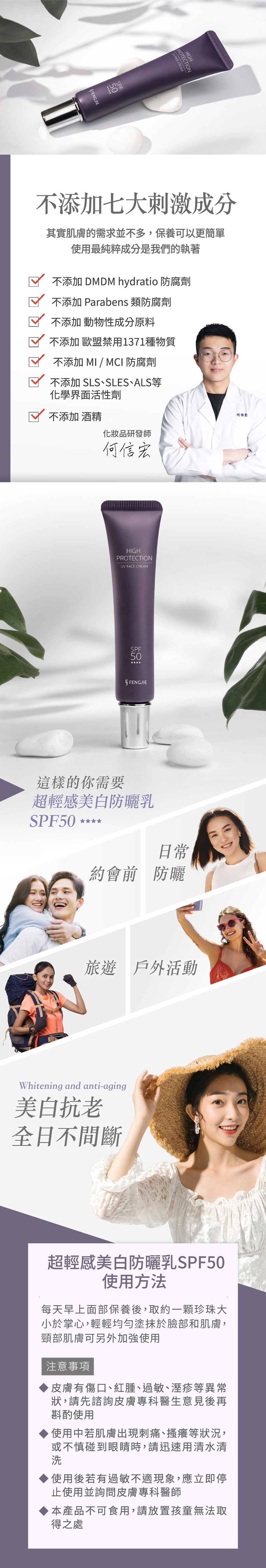 超輕感美白防曬乳質地輕、薄、透,即使多次補擦也不會有黏膩感,不易造成肌膚負擔